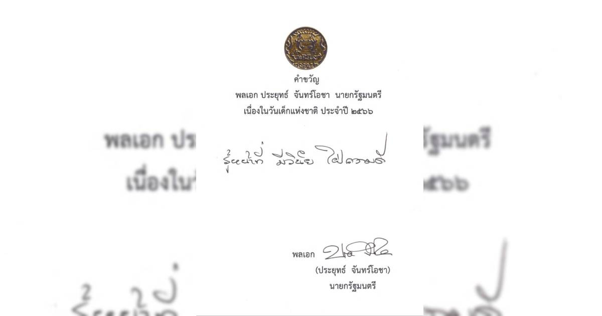 โฆษกรัฐบาลเผย นายกฯ มอบคำขวัญเนื่องในวันเด็กแห่งชาติ ประจำปี 2566 “รู้หน้าที่ มีวินัย ใฝ่ความดี”