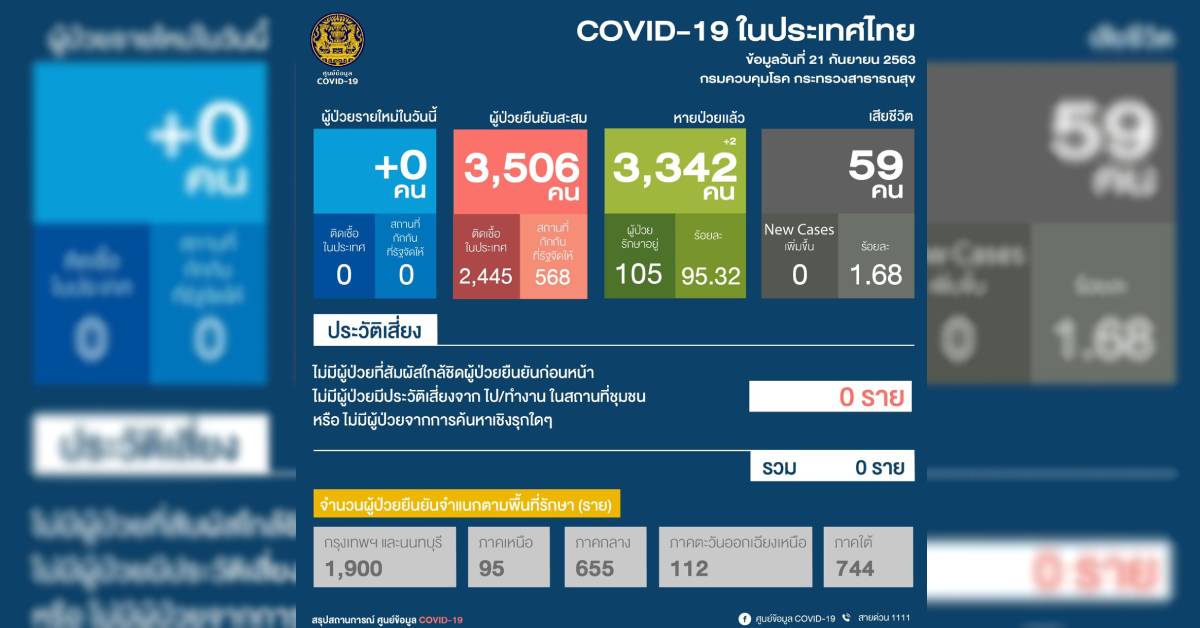 ไทย ไม่พบผู้ติดเชื้อโควิด-19 เพิ่มวันนี้ ขณะที่ทั้วโลกพุ่งกว่า 31 ล้านคน