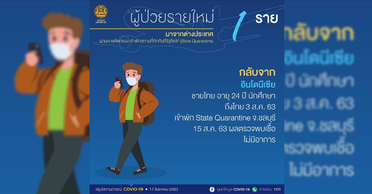 ศบค. เผย ไทยพบผู้ป่วย “โควิด-19” เพิ่ม 1 ราย มาจากอินโดนีเซีย