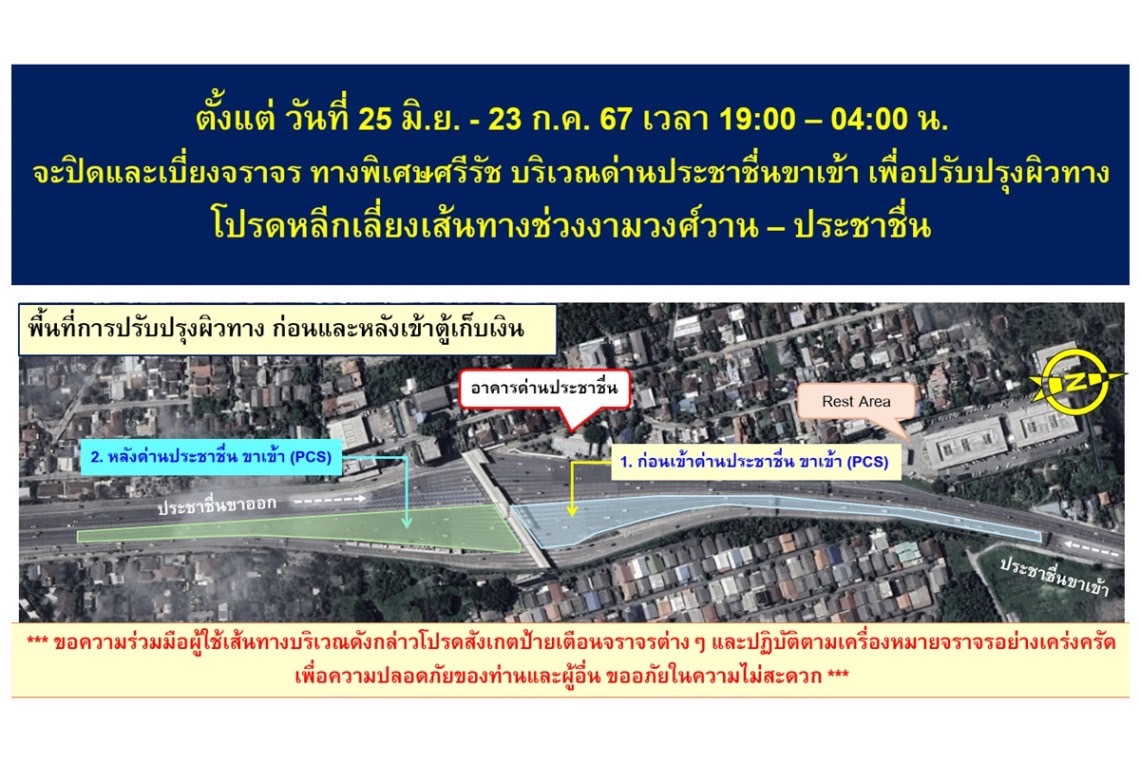 BEM แจ้งปิดและเบี่ยงจราจรด่านประชาชื่นขาเข้า 25 มิ.ย. – 23 ก.ค.